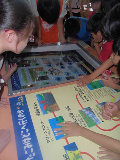 はじめは,ビデオや展示物などを見ながら,ゴミの処理やエコランドの役目について説明をお聞きしました。
