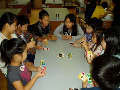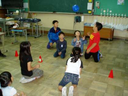 自己紹介の後は,グループのリーダーさんが考えてくれた遊びを楽しみました。カードゲームをするグループやハンカチ落としをするグループ,風船でバレーボールをするグループなど,思い思いに楽しい時間を過ごしていました。