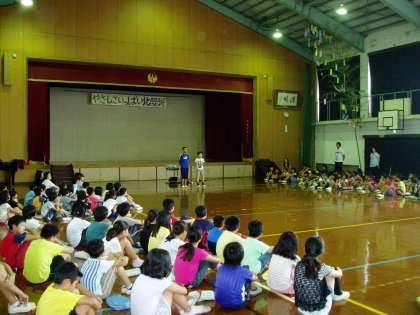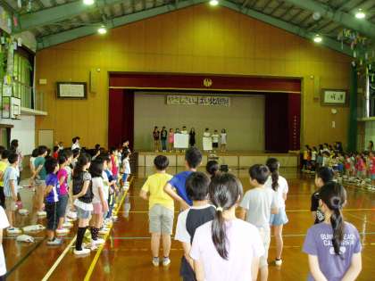 まずは,全校で声を合わせて元気いっぱいの歌を体育館に響かせました。