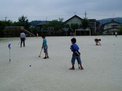 7月4日に実施した『土曜学習』の様子です。漢字検定に向けて練習に取り組んだり,英語に親しんだり,地域の方々からグランドゴルフを教わったりしました。