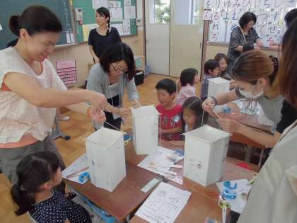 10日(金)の5校時に,1年生の教室では「行灯づくり」が行われました。絵を描き,枠を組み合わせ,紐で括って完成です。工程は少ないのですが,なかなか難しかったようです。だからこそ,出来上がった時の子どもたちの笑顔は,満足感でいっぱいでした!!