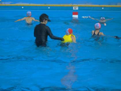 あすなろ学級でも,バランスをとって浮くことを練習しています。この間は,自ら「えいっ!」と一人で泳ぐことに挑戦し,初めて「数メートル」泳ぐことができました!!