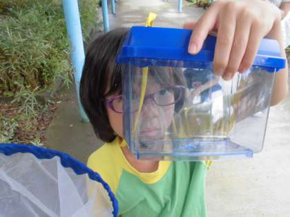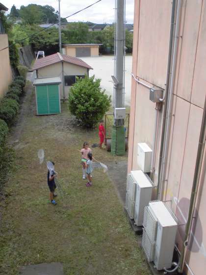 子どもたちに,大人気だったのは体育館東側の<ビオトープ>付近でした。子どもたちは,シジミチョウ,バッタ,カナブンなど昆虫も探しましたが,ビオトープ付近でアカハライモリに魅了されていました!!