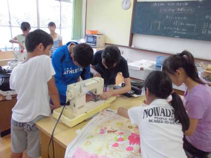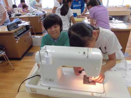 慎重にスイッチを足で踏みながら,じっくりとミシンを使って縫っていました。少しずつ慣れてくるに従って,家庭科室から心地よいミシンの音が聞こえてくることでしょう。仕上がりが楽しみです!!