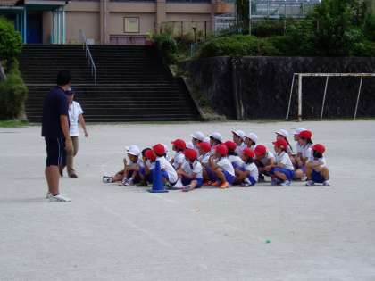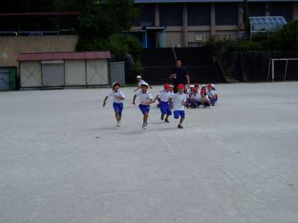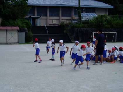 給食の配膳をしてもらっている間に,低学年リレーに出場するメンバーは,運動場でリレーの練習をしました。広い運動場でのリレーを初めて経験する1年生は,少し迷いながらも走るコースや順番を覚えることができました。