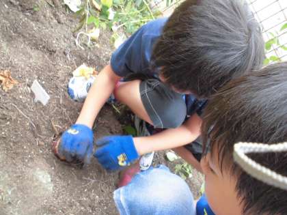 畳1畳ほどの学級園の花壇ですが,とても大きくて,艶やかな紫色のおいしそうなお芋がたくさんできていました!!