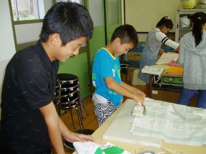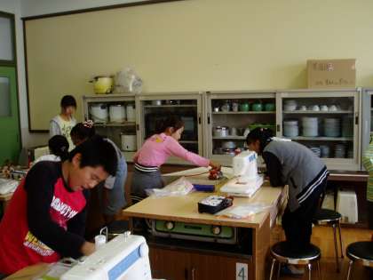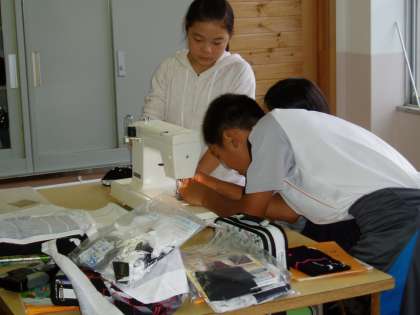 6年生の子どもたちは,家庭科の学習で『エプロンづくり』に挑戦しています。アイロンをかけて折り目をつけ,使い慣れないミシンに悪戦苦闘しながら頑張っています。