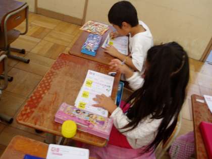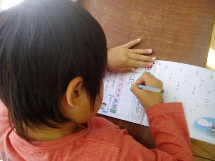 1年生は『ひらがな』『カタカナ』を学習し,今は『漢字』の学習をしています。漢字ドリルを使い,今日は『見』や『学』という文字を練習していました。