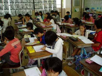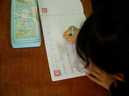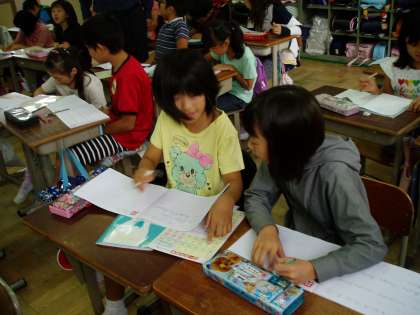 まだ覚えられていないローマ字でも,ローマ字の表を見ながら書き表していました。