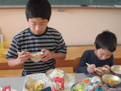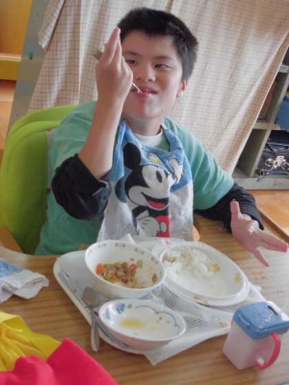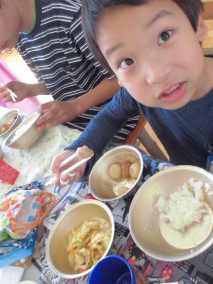 少しぬめりがあり,小さく丸々とした里いもでしたが,お箸で上手につまみ,もぐもぐと食べていました!