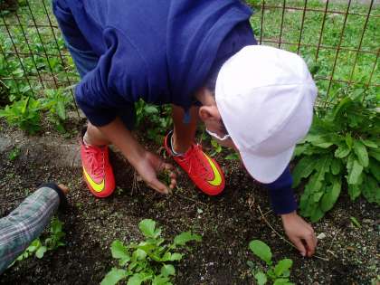 2年生の子どもたちは,『大根,かぶ,ブロッコリー』といった野菜を育てています。今日は,草を抜いたり,間引きをしたり,水をあげたりしました。