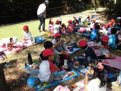 自然がいっぱいで,亀や鹿の親子が子どもたちの遠足を出迎えるように姿を見せてもくれました。