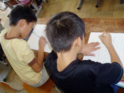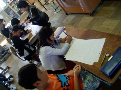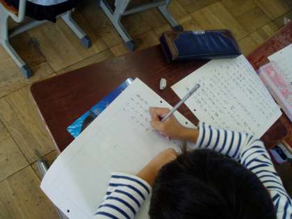 書き終えた後は,自分の作文を読み返しながら『めあて』が達成できているのかを確かめていました。