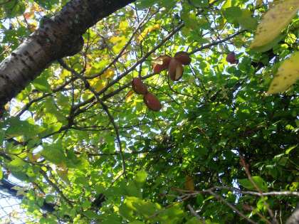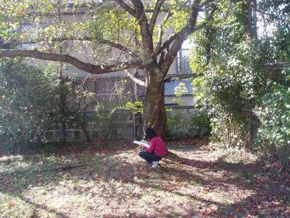校庭の隅の高いところに『あけび』を見つけていました。先生から実の名前(『あけび』)を教えてもらい,しっかり記録を残していました。
