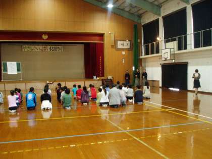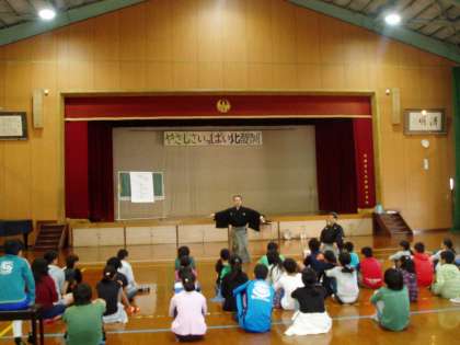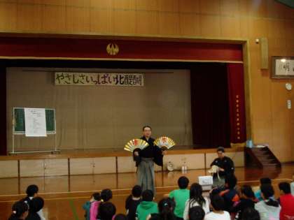6年生の子どもたちは,今日の3・4時間目に『文化芸術とくべつ授業』で能楽(シテ)について,田茂井廣道さんをはじめとした講師の方々から学びました。