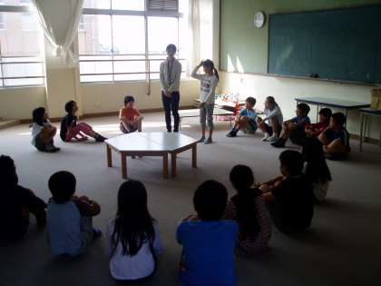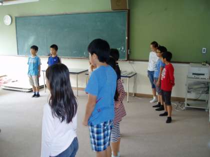 来週の月曜日に出発する『みさきの家』野外活動の日が,近づいてきました。4年生の子どもたちは,プレールームに集まりキャンプファイヤーの練習に取り組んでいました。