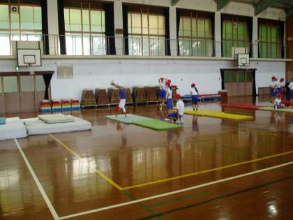 6年生の子どもたちは,開脚前転や開脚後転,側方倒立回転,伸膝後転などのマット運動に挑戦しています。