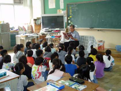 3年生の教室では,朝のスタートに担任の先生から絵本の読み聞かせをしてもらっていました。