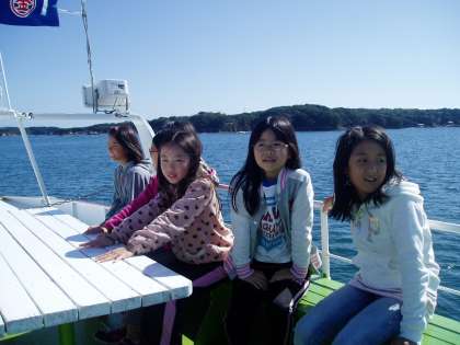 賢島からは,遊覧船に乗船し『仲良し港』まで楽しい船の旅です。船長さんから,英虞湾のことを沢山教えていただきました。