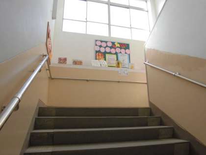 図書室に向かう階段のフロアには,図書室に向かうのが楽しくなる本の紹介を図書支援員の末房先生にしていただいています。
