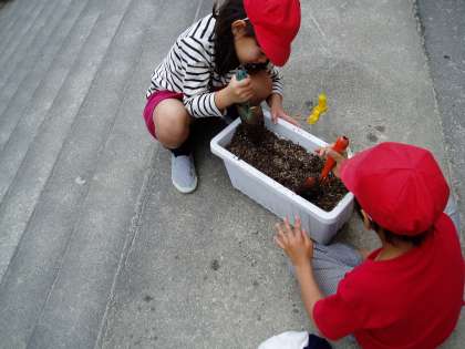 1年生は,来年度に入学してくる新1年生をお迎えするためにチューリップの球根を植えていました。