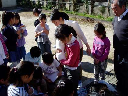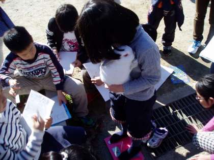3年生は算数科で『重さ』について学習しています。今日は,学校で飼育しているウサギ(ゆきちゃん)の体重を測ってみました。