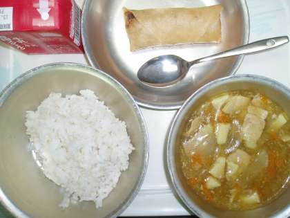 今日のメニューは『カレーあんかけごはん』と『春巻』でした。明日は11月生まれのお誕生日給食が行われます。