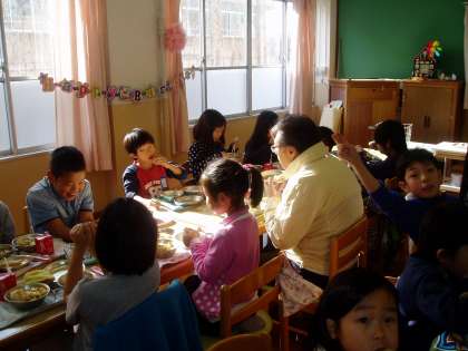 今日は,条件が揃わず滞っていた10月のお誕生日給食が再開されました。10月生まれの子どもたちがランチルームに集い,誕生日の歌を歌ってから「いただきます。」をしました。
