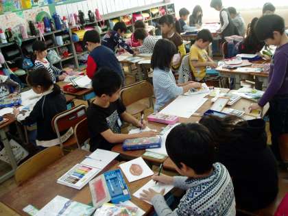 1年生は国語科の学習で『ものの 名まえ』という勉強を始めました。この単元では,お店屋さんとお客さんに分かれ,買い物をする時の言葉づかいを学習します。また,ものの名前に多く触れる機会にもしていきます。