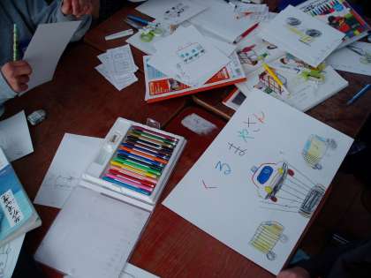 子どもたちは,お店の看板や広告,品物やお金を班ごとに作成し,お店屋さんやお客さんになった時の練習をしながら学習をすすめていきます。