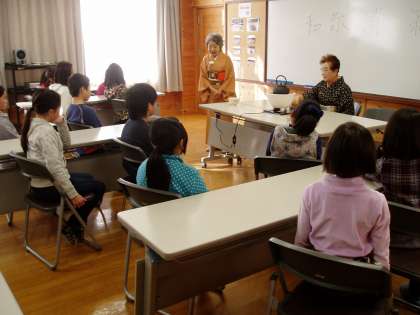 1月16日(土)に土曜学習の一環で『茶道』に挑戦しました。まず最初に,講師の先生から茶道の心得や作法についてお話を聞かせていただきました。