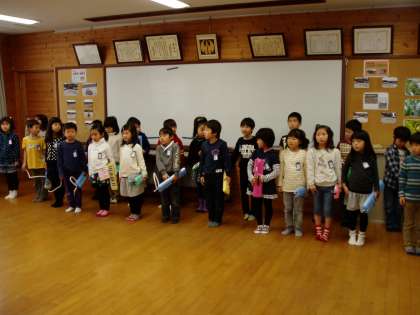 1年生は2月8日(月)に実施する乳児さんやそのお母さんとの交流会に向けて,歌と合奏の練習をしていました。