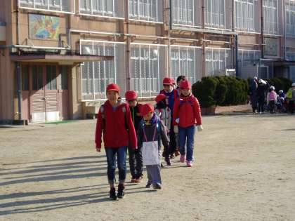 6年生は毎年経験してきた高塚山登山です。最高学年として,初めて高塚山に登る1年生に心を配りながら歩みを進めていました。