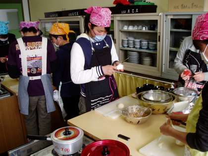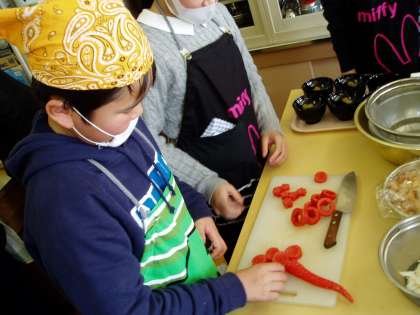 子どもたちは,蕪の面取りをしたり,金時人参を型抜きで梅の形にしたり,柚子を松葉にしたりと食べる人の視覚に気を配る日本料理の良さを学んでいました。