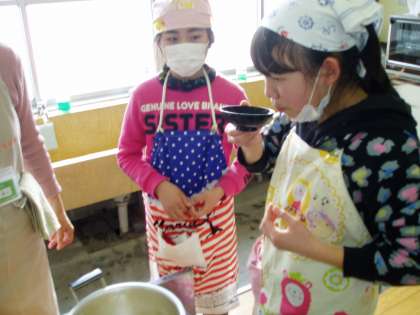 お塩と薄口醤油の量に気をつけながら調味し,味見をして出汁を完成させました。