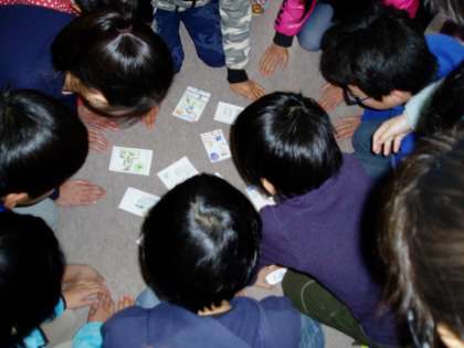今日は,先生が読み札を読み上げ,クラス全員でカルタ取りをしました。