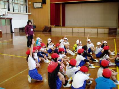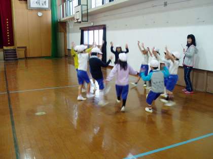 1年生は体育の時間に表現運動をしています。今日は,ロシア民謡に合わせたダンスをグループごとに発表しました。