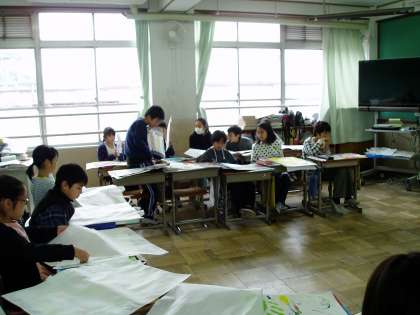 明日(2月24日)から作品展を開きます。子どもたちは,作品展に出す絵画作品を選んだり,体育館へ作品を運び込んだりしました。