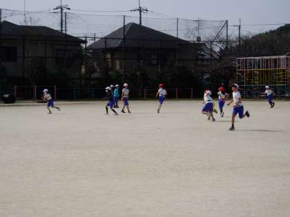 今日の3年生の体育では,まず,『シッポ とり』をして駆け回り,体を温めていました。タグラグビーで使う『タグ』をシッポに見立てて,相手のシッポを取り合うゲームです。子どもたちの元気な歓声が運動場に響いています。