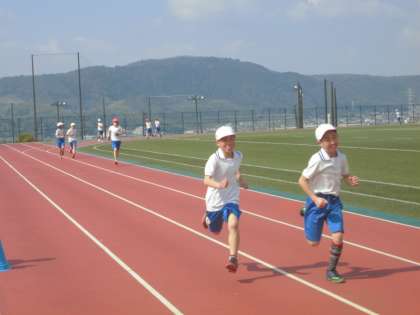 400mトラックを3周するのは,ペース配分も難しいですが,朝練習を重ねてきた成果でしょう。笑顔でしっかりと走り切った高学年でした!!