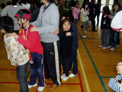 今日は伏見東支部育成学級のフレンドタイムお別れ会が,池田小学校で開催されました。合同運動会やフレンドタイム,小さな巨匠展などで共に育ちあった友だちと楽しい時間を過ごしました。