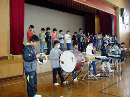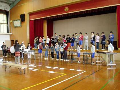 6年生は3月9日(水)に実施する6年生を送る会の練習を体育館で行いました。今日は,実際に体育館へ楽器などを運び込み仕上げの練習になりました。