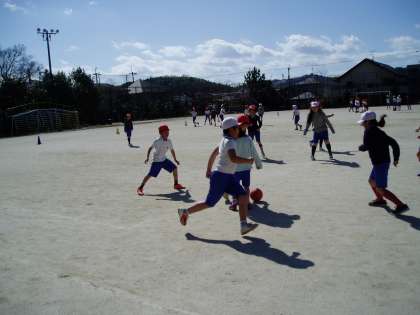 昨日の雨もあがり,午後からは少し気温も高くなりました。気持ちの良い天候のもと,子どもたちは元気にボールを追いかけています。