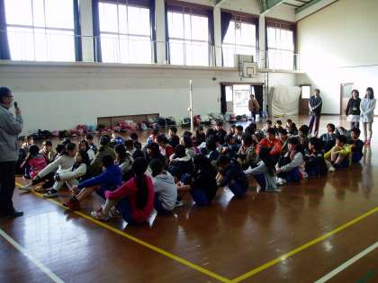 今日で今年度の部活動が終了しました。1年間部活動に参加できた子どもたちが体育館に集まりました。