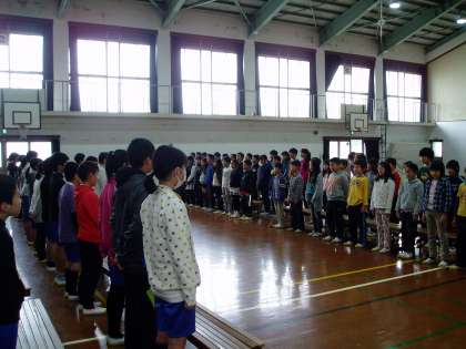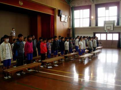 今日の3時間目は,4・5・6年生が体育館に集まり卒業式の練習を行いました。今日は,言葉や歌の練習を中心に行っていました。
