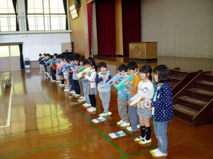 音読をしたり,合奏をしたり,歌を歌ったりして入学式に花を添えてくれます。
