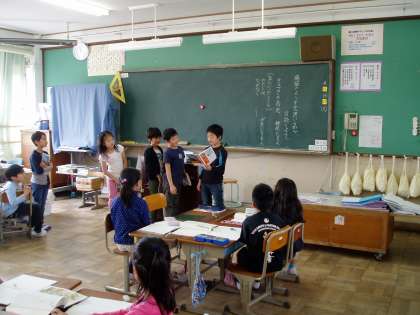 発表している人の方へ体を向け,相手の思いを聞き取る力を育てていきます。