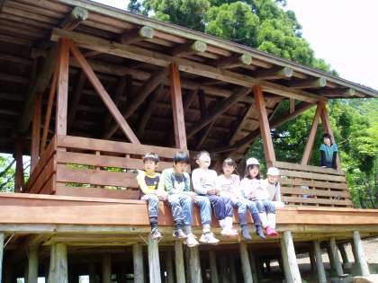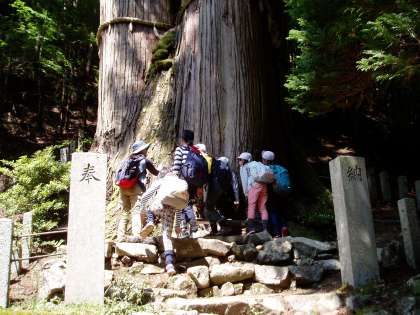 昼食後,急な下り坂を慎重に下山し,目的の三本杉に出会うことができました。子どもたちは,想像を超えるその雄大さに歓声をあげていました。