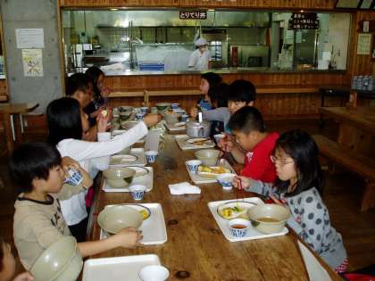 最後のプログラムを済ませ,昼食をいただいています。この4日間,山の家の職員の方々には大変お世話になりました。ありがとうございました。