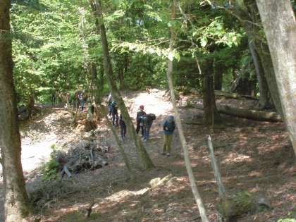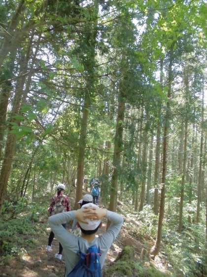 朝から真っ青な空が広がり,山々の緑が目にまぶしい中,三本杉登山に挑みました。山の中の傾斜がある階段が苦しくもありましたが,子どもたちは珍しい植物や生き物にであったり,けわしい山道を経験したりと,苦しいけどやり遂げた喜びを体感しました。そして,三本杉を目の当たりにし,長い年月生き存在してきたその姿にパワーをいただいたり神聖な気持ちにさせてもらったりした子どもたちです。